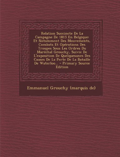 Read online books Read Relation Succincte de La Campagne de 1815 En Belgique: Et Notamment Des Mouvements, Combats Et Operations Des Troupes Sous Les Ordres Du Marechal ... Perte de La Bataille de Waterloo... - Primar PDF or download full books Free Relation Succincte de La Campagne de 1815 En Belgique: Et Notamment Des Mouvements, Combats Et Operations Des Troupes Sous Les Ordres Du Marechal ... Perte de La Bataille de Waterloo... - Primar PDF Download in PDF, ePub, Kindle format for Free